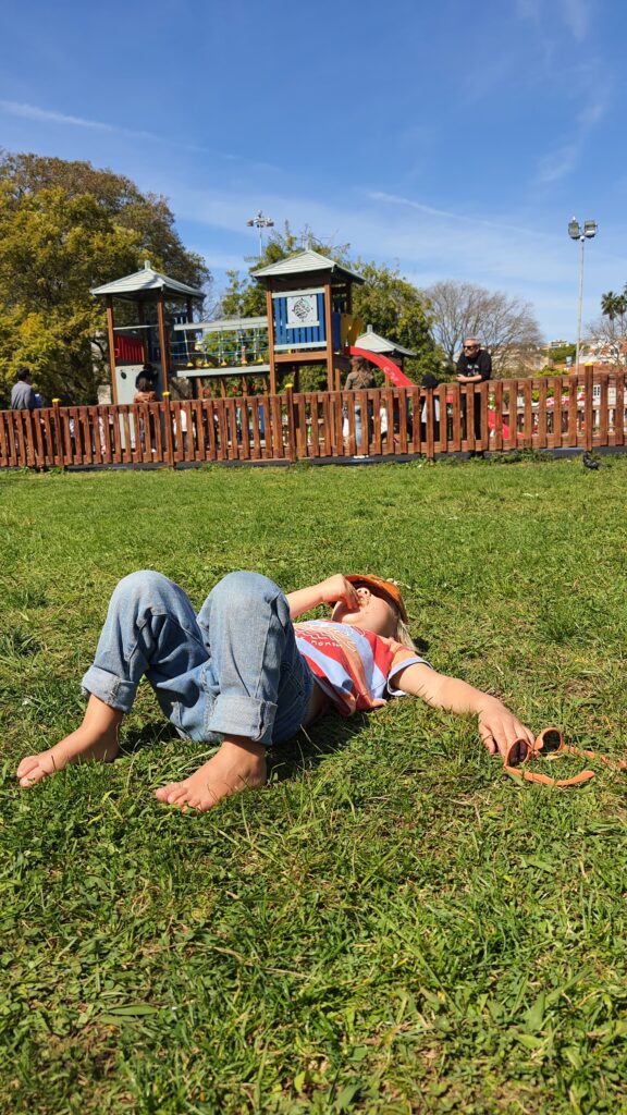 Weszliśmy do cukierni po drugiej stronie ulicy, gdzie sprzedają te same ciacha, domówiliśmy kawę i udaliśmy się do pobliskiego Parku Afonso de Albuquerque z trawą, w sensie trawnikiem, i oddawaliśmy się rozkoszom płynącym ze sklepienia jamy ustnej (ciastka) i niebieskiego (słońce).